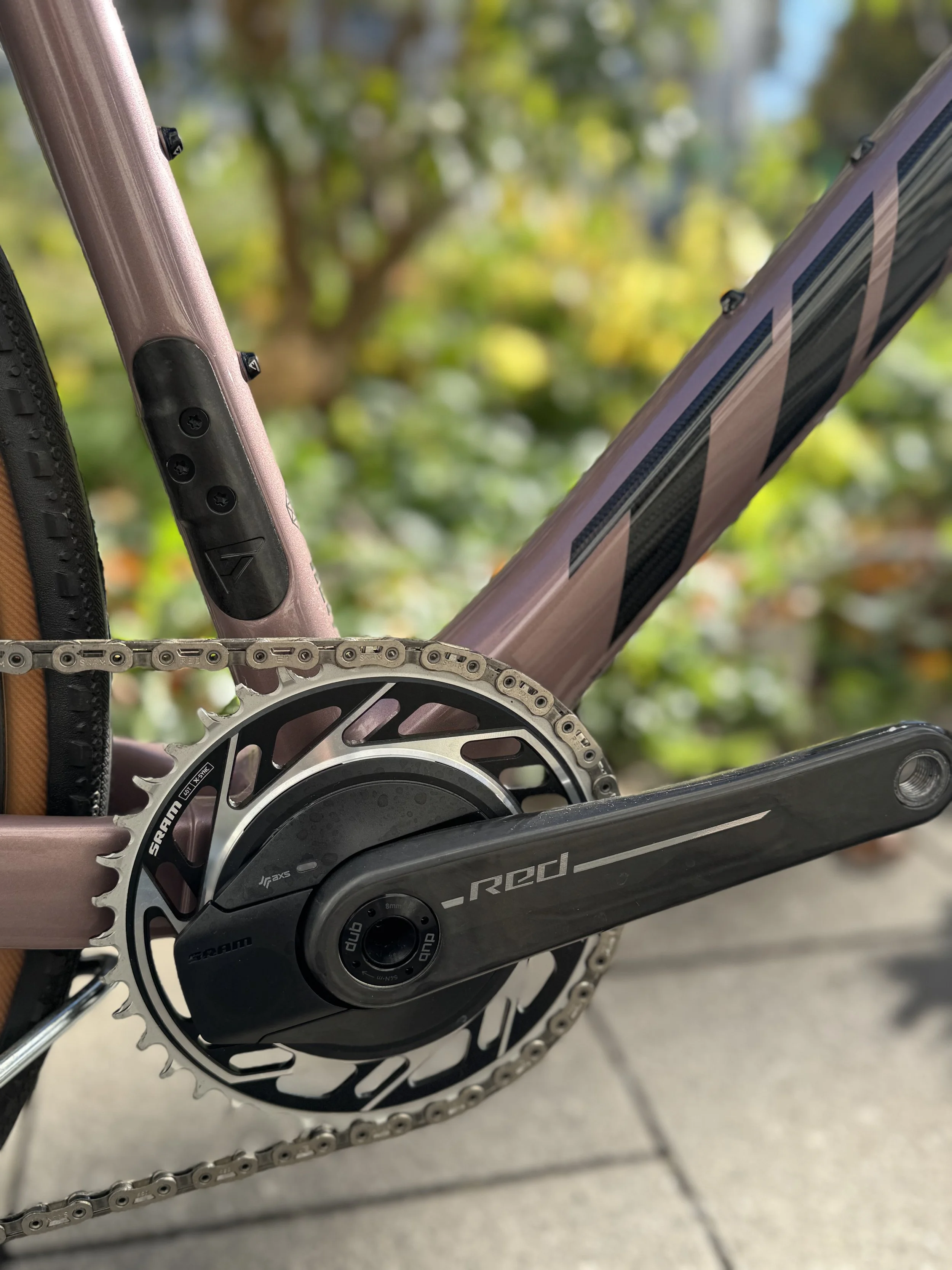 • SRAM Red XPLR AXS, 1×, 40T chainring, 10–46 cassette, powermeter included